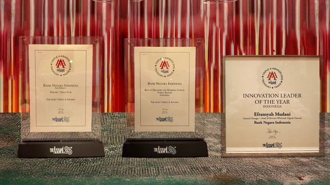 PT Bank Negara Indonesia (Persero) Tbk atau BNI menyabet tiga penghargaan bergengsi dari ajang Triple A Treasurise Awards 2025 yang dilakukan oleh The Asset di Hong Kong. Ketiga penghargaan tersebut adalah Best in Treasury and Working Capital-Public Sector, Editor's Triple Star for New BNIdirect, dan Innovation Leader of the Year.