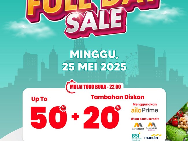 Transmart Full Day Sale hadir lagi besok, Minggu 25 Mei 2025! Transmart Full Day Sale datang dengan diskon melimpah hingga 50% + 20%.
