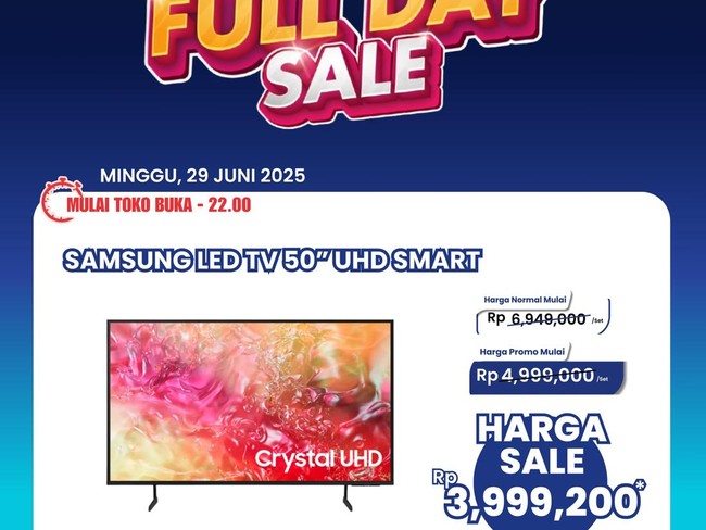 Diskon yang ditawarkan tak main-main dan berlaku untuk berbagai produk. Salah satunya Samsung LED TV 50" UHD Smart yang mendapatkan potongan harga lebih dari Rp 2 jutaan.