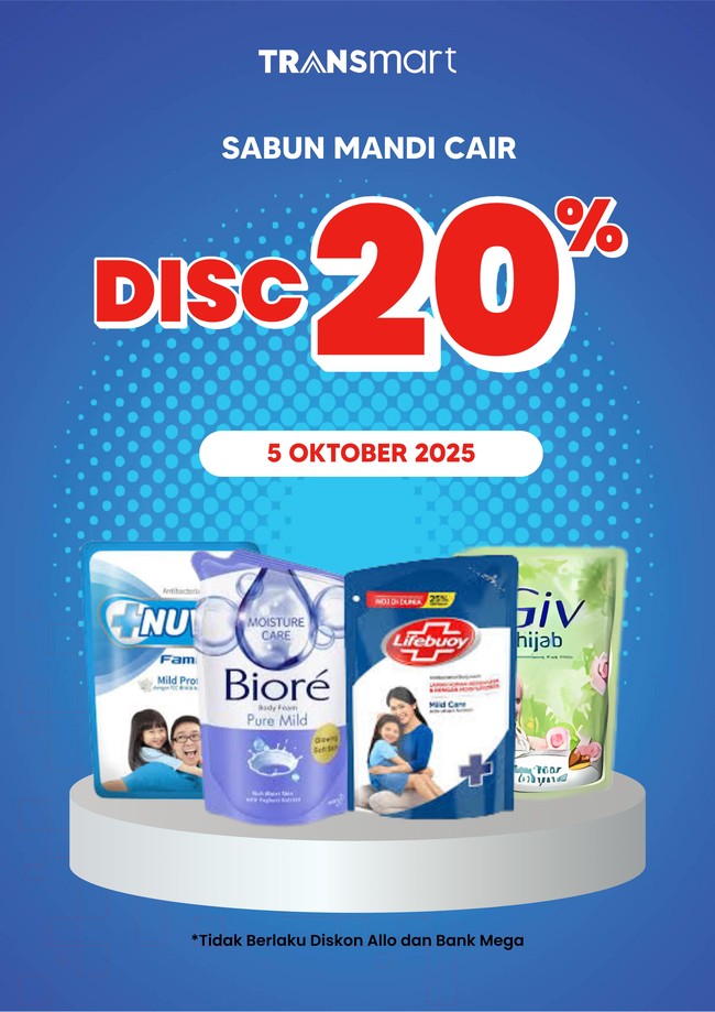 Pekan ini, ada Nuvo Mild Protect, Biore Pure Mild, Lifebuoy Mild Care, dan Giv Hijab Rose Water & Argann Oil yang diskon 20% pada 5 Oktober 2025.