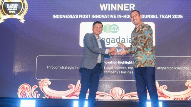 Pegadaian kembali menorehkan prestasi gemilang di bidang tata kelola dan hukum. Hal itu ditunjukkan dengan penghargaan bergengsi 'Indonesia's Most Innovative In-House Counsel Team 2025 - Non-Bank Financial Services' dalam ajang Indonesia In-House Counsel Awards 2025.