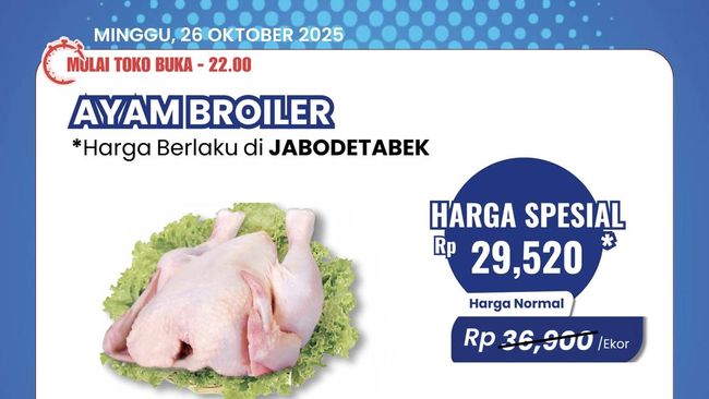 - Jabodetabek: Rp 29.520 per ekor (harga normal Rp 36.900)