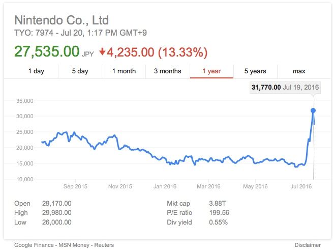 Tak hanya itu, saham Nintendo juga mencetak rekor sebagai saham yang paling marak ditransaksikan dalam satu hari sepanjang sejarah pasar modal Jepang. Rekor ini dicetak Nintendo pada perdagangan Jumat lalu.