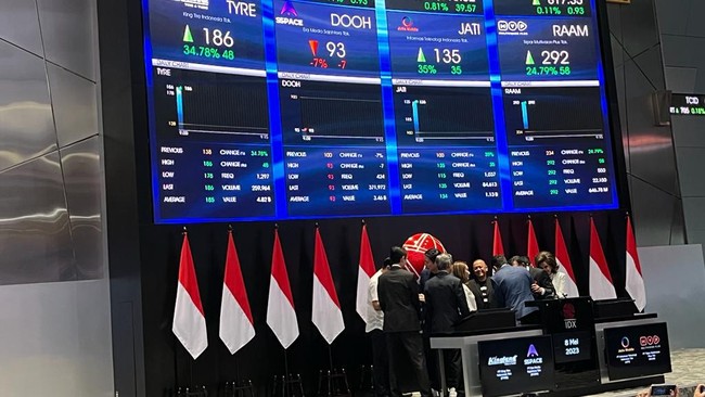 Hari ini juga ada JATI yang merupakan perusahaan yang bergerak di bidang teknologi informasi. Dalam penjualan perdana harga saham JATI dibuka naik ke Rp 120 dan terus naik hingga 35% atau 35 poin ke level Rp 135 per saham. Kapitalisasi pasar saat ini mencapai Rp 440,4 miliar.
