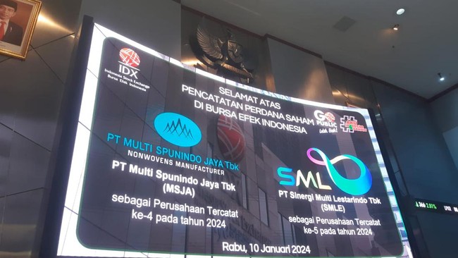 Dua perusahaan resmi mencatatkan sahamnya di Bursa Efek Indonesia (BEI). Dua perusahaan itu yakni PT Multi Spunindo Jaya Tbk (MSJA) dan PT Sinergi Multi Lestarindo Tbk (SMLE).