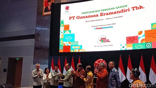 Produsen makanan dan kacang-kacangan, PT Gunanusa Eramandiri Tbk (GUNA) resmi melantai dengan kode saham GUNA di Bursa Efek Indonesia (BEI) hari ini, Selasa (9/7) dan menjadi emiten ke-31 yang tercatat sepanjang 2024. Baru diluncurkan, saham GUNA meroket 34,67% alias nyaris Auto Rejection Atas (ARA).