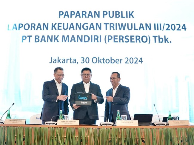Direktur Utama Bank Mandiri Darmawan Junaidi mengatakan kenaikan ini didukung dengan kenaikan penyaluran kredit secara konsolidasi mencapai 20,8% secara year on year (YoY) menjadi Rp 1.590 triliun per Kuartal III 2024.