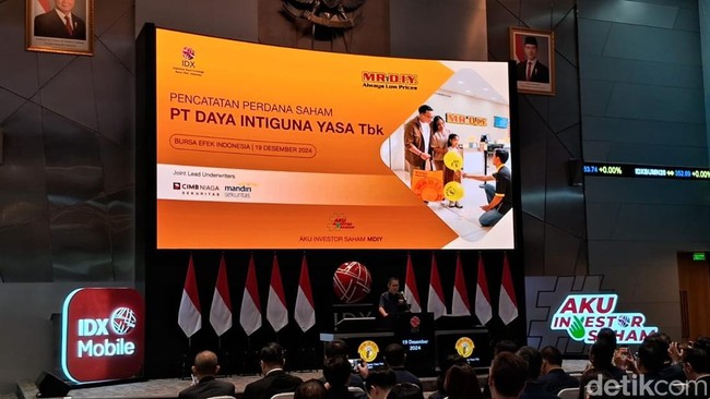 Pada pencatatan perdana saham atau initial public offering (IPO), saham PT Daya Intiguna Yasa Tbk(MDIY) atau MR DIY diketahui dibuka auto reject bawah (ARB) atau menyentuh level terendah, yakni 24,55% dan terjun ke level Rp 1.550 pada pukul 9.00 WIB.