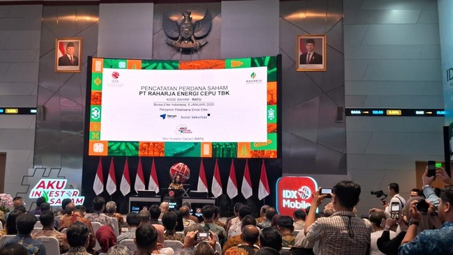 PT Raharja Energi Cepu Tbk (RATU) menjadi perusahaan ketiga yang mencatatkan sahamnya atau initial public offering (IPO) di Bursa Efek Indonesia (BEI) hari ini, Rabu (8/1/2025). Adapun dana segar IPO sebesar Rp 624,46 miliar dari aksi korporasi ini.