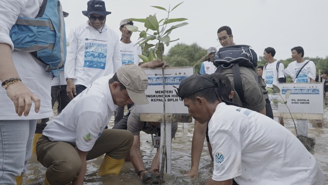 "Tentu ini kita menanam dan merawat, teman-teman yang bekerja di bidang lingkungan akan melakukan pemantauan, evaluasi, akan melakukan komunikasi dengan kelompok-kelompok yang menjadi mitra untuk terus mempercepat proses penanaman mangrove," tutupnya.
