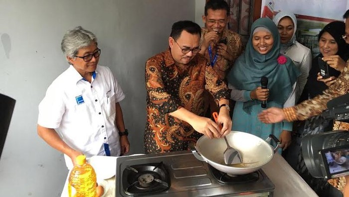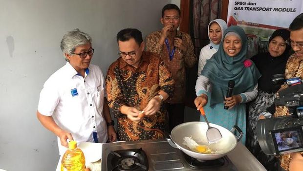 Ditemani oleh Direktur Utama PT Pertamina (Persero), Dwi Soetjipto, Sudirman mencoba memasak telur dengan menggunakan gas bumi. Aksi memasak ini dilakukan di rumah seorang warga yang sudah dialiri gas bumi.