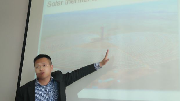 "Turbine engineering itu menyimpan listrik. Jadi, kalau tidak ada matahari ya bisa dikombinasi dengan gas. Kita hanya butuh lahan, tidak perlu tower, tidak ada polusi," ucap Chen.