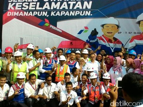 Usai berkeliling Terminal BBM Cikampek, Sudirman diajak berfoto oleh para pekerja Pertamina. Dengan sangat antusias, mereka berebut tempat agar bisa berfoto dekat dengan Sudirman.
