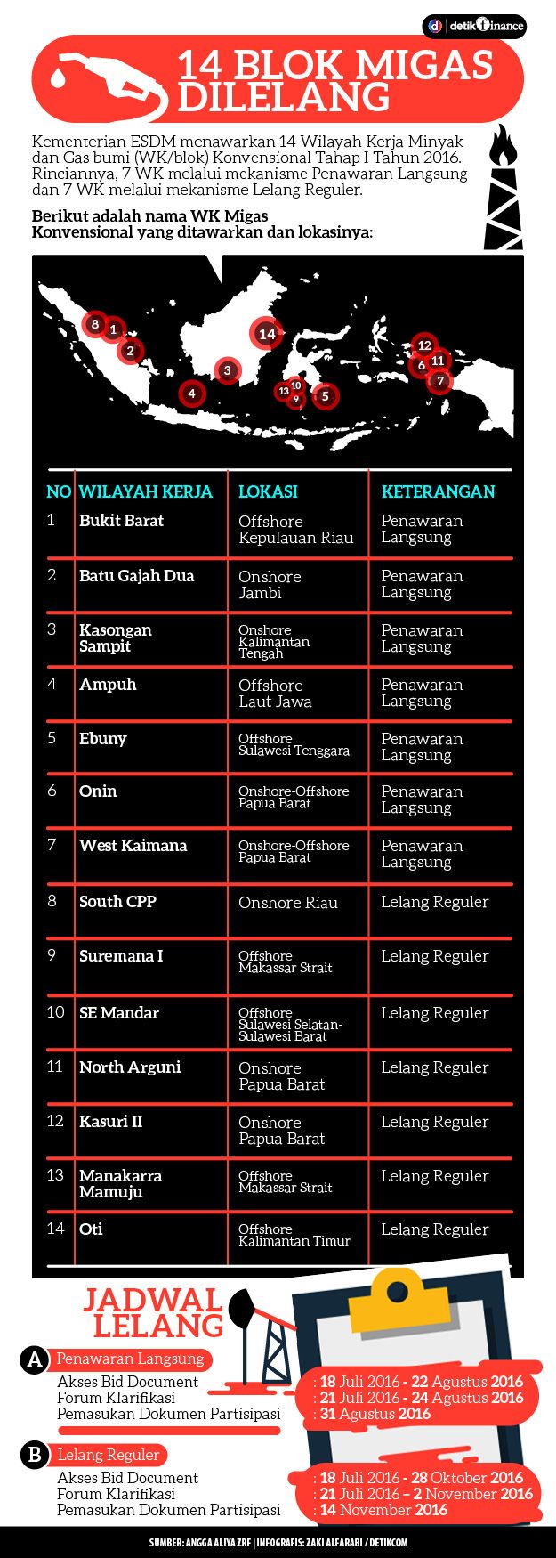 Untuk meningkatkan minat investor berpartisipasi pada Penawaran Wilayah Kerja Migas Konvensional Tahap I Tahun 2016, Pemerintah menerapkan skema baru, yaitu model lelang "open bid split". Investor dapat menawar bonus tanda tangan dan split bagi hasil.