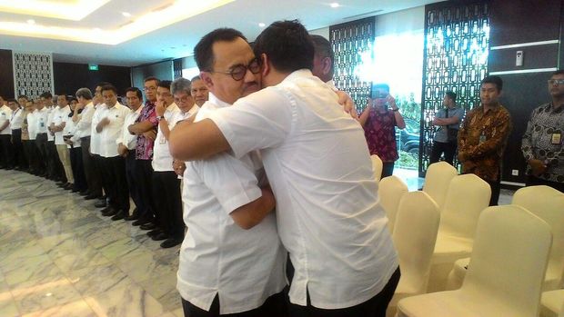 Perpisahan ditutup dengan salam-salaman. Sudirman berjalan menghampiri para pegawai ESDM satu per satu. Isak tangis mewarnai acara ini.
