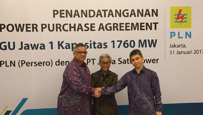 Penandatanganan tersebut dilakukan oleh Direktur Utama PLN Sofyan Basir bersama dengan Direktur Utama PT Jawa Satu Power Ginanjar, Manager Overseas Power Project Dept Marubeni Corporation Akira Suda, dan Assistant General Manager Sojitz Corporation Ikuya Nakamura, disaksikan oleh Direktur Utama Pertamina Dwi Soetjipto.
