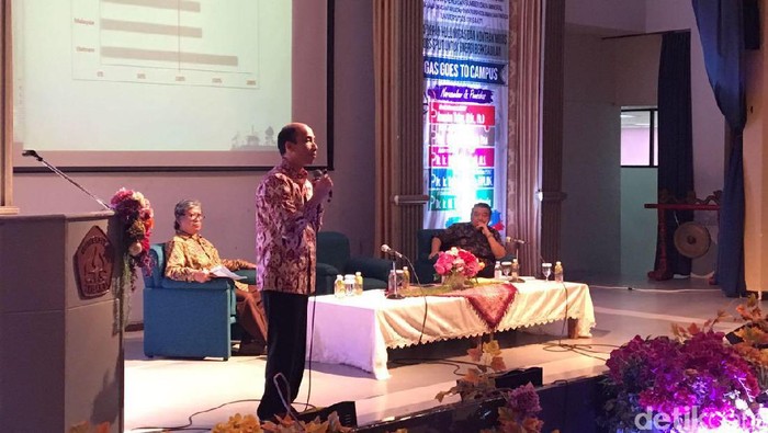 "Saya merasa terhormat bisa diundang, saya mau sedikit bagi ilmu semoga bisa bermanfaat bagi kita sendiri di Kementerian ESDM maupun untuk yang hadir. Temanya hari ini gross split," ucap Arcandra mengawali kuliah umumnya, Jumat (17/3/2017).