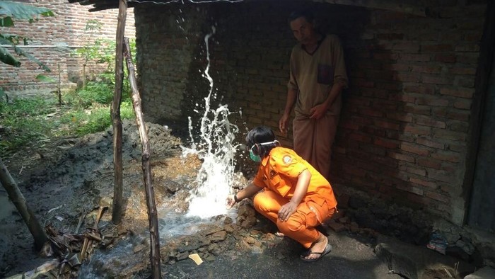 Semburan gas alam di Indramayu Foto: Dok. BPBD Kabupaten Indramayu