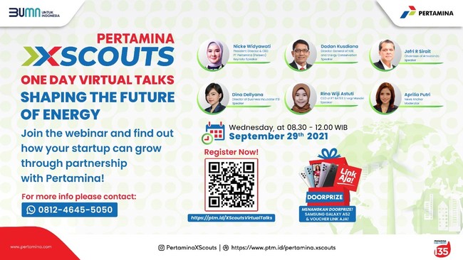 "Untuk mengetahui lebih lanjut mengenai Program XScouts secara komprehensif termasuk persyaratan dan benefitnya, peserta diharapkan dapat registrasi dan hadir dalam event One Day Virtual Talks tersebut. Informasi mengenai acara dapat diperoleh melalui Instagram dan Website Pertamina XScouts," pungkasnya.
