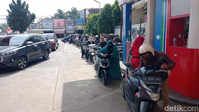 Lalu BBM jenis Pertamax menjadi Rp 14.500 per liter. Dari pantauan detikcom di SPBU jalan raya Parung beberapa menit sebelum kenaikan harga pukul 14.30 WIB terlihat antrean mengular hingga hampir ke jalan raya.