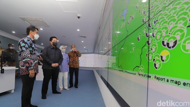Menteri BUMN Erick Thohir meninjau Pertamina Integrated Enterprise Data and Command Center (PIEDCC). Erick mengecek pasokan bahan bakar minyak (BBM) setelah naik harga pada Sabtu (3/9/2022).
