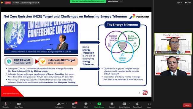 Pusat Pengembangan Sumber Daya Manusia Minyak dan Gas Bumi (PPSDM Migas) mengadakan webinar bertajuk 'Refinery Challenges: Strategi Bisnis Kilang Menghadapi Era Net Zero Emission (NZE)'. Kegiatan ini dalam rangka menanggapi isu tentang transisi energi yang sedang hangat di kalangan pemerhati industri migas, dan target RI untuk mencapai NZE pada tahun 2060.