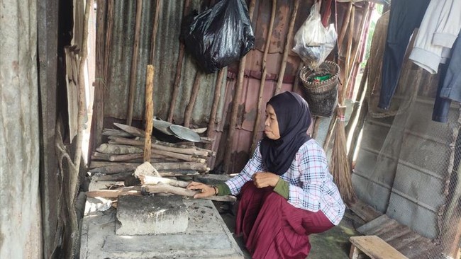 Tinggal seorang diri setelah berpisah dengan suaminya, Samsina mengenang getir masa lalu. "Dulu, kalau malam hanya ada cahaya kecil dari botol bekas minuman energi, diisi minyak dan sumbu. Itu pun redup, kadang asapnya membuat sesak," ungkapnya sambil tersenyum tipis.