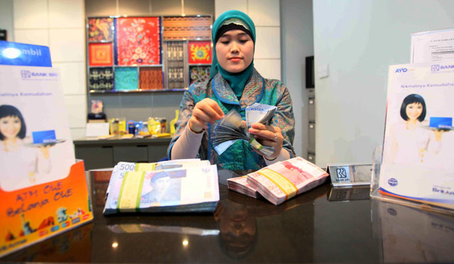 Seorang karyawati PT Bank Rakyat Indonesia (Persero) Tbk melayani nasabah yang menabung di kantor cabang BRI Stasiun Gambir, Jakarta Pusat, Sabtu (28/7). (dok BRI)
