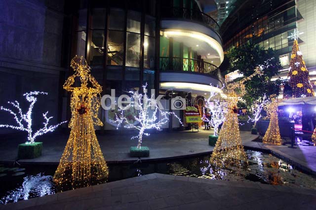 Pernak-pernik penyambutan Natal, menghiasi kawasan Lippo Mal Kemang, Jakarta, Kamis (13/12).