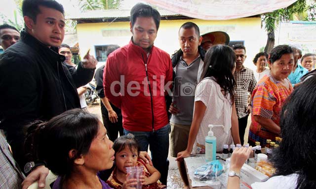 Jakarta - Ketua Umum Himpunan Pengusaha Muda Indonesia Jakarta Raya (Hipmi Jaya) Andika Anindyaguna bersama Ketua Umum Hipmi Jakarta Pusat Mohammad Aufar Hutapea menunjau posko relawan Hipmi Jaya untuk korban banjir di di Jalan Bakti, Penjaringan, Jakarta Utara, Selasa (22/1/13).