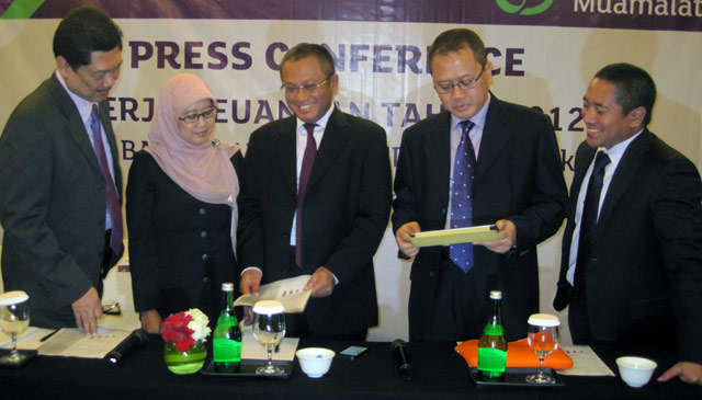 - Bank Muamalat menyampaikan paparan kinerja keuangan tahun 2012. Bank Muamalat mencatatkan pertumbuhan laba bersih sebesar 42 persen.