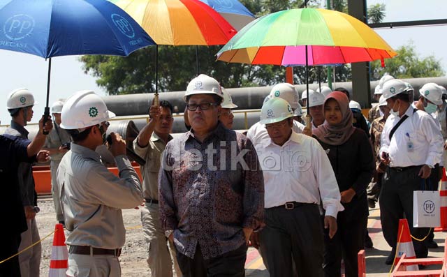Β Β Β Β Direktur Utama PT PP (Persero) Bambang Triwibowo juga ikut meninjau pabrik precast, di kawasan Cilegon, Jawa Barat.