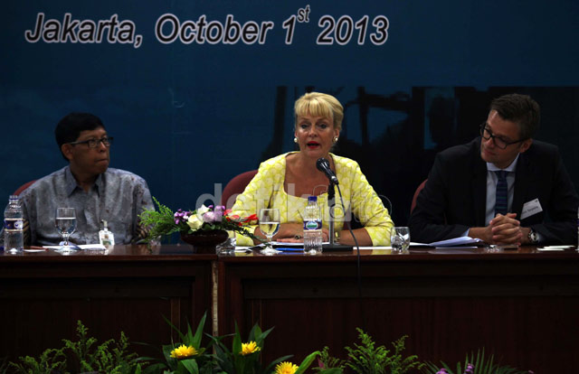 Kepala Pembinaan Konstruksi Kementerian Pekerjaan Umum Hediyanto W Husaini, Duta Besar Swedia Ewa Ulrika Polano, Direktur Komersial Volvo Indonesia Jurn Terpstra menjadi pembicara.