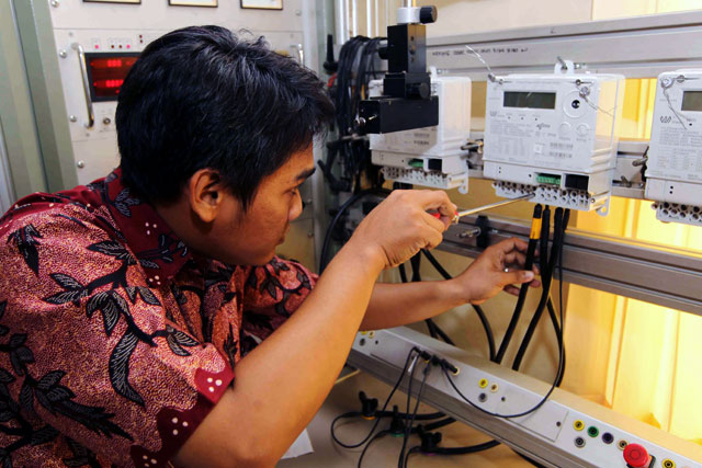 Pegawai PLN Berbatik Para pegawai PLN memakai batik saat bekerja. Agus Trimukti/Humas PLN. Seorang pegawai PLN yang mengenakan pakaian batik mengecek meteran sebelum dipasang di rumah pelanggan. Agus Trimukti/Humas PLN. Mereka memakai batik untuk memperingati Hari Batik Nasional. Agus Trimukti/Humas PLN. Dua orang pegawai PLN melayani pelanggan. Agus Trimukti/Humas PLN.