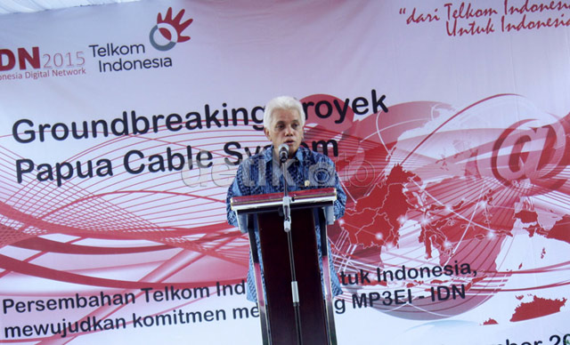 - Menko Perekonomian Hatta Rajasa meresmikan pembangunan kabel serat optic milik PT Telekomunikasi Indonesia Tbk di Papua, Sabtu (23/11). Peletakan batu pertama pembangunan kabel serat optik Papua Cable System sepanjang 2.000 kilometer ini merupakan program Telkom dalam menjalankan program Indonesia Digital Network 2015 dan mendukung MP3EI dengan total anggaran sebesar USD 71,1 juta.