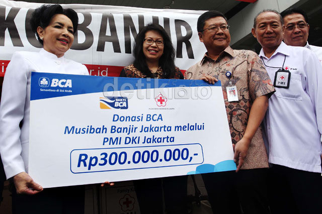 - BCA memberikan bantuan memberikan bantuan untuk korban banjir di Jakarta. Penyerahan bantuan dilakukan secara simbolis oleh Direktur BCA Subur Tan kepada Ketua PMI DKI Jakarta Rini Sutiyoso di Kantor Pusat PMI DKI Jakarta, Rabu (22/01/2014).