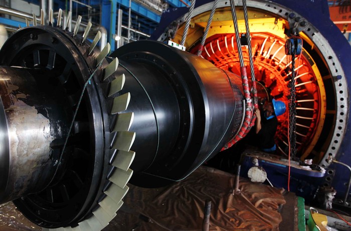 Untuk menjaga performa, pemeliharaan rutin generator sekaligus melakukan perbaikan pada stator dan rotor trs dilakukan. Istimewa/dok PLN.