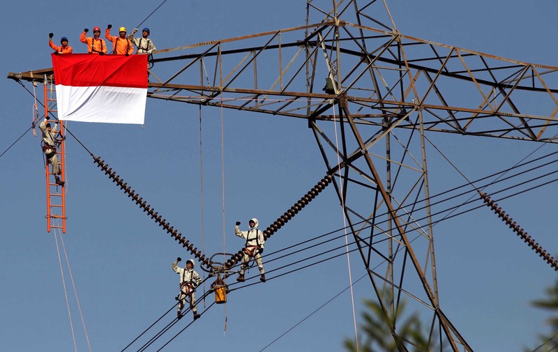 Melihat Aksi Petugas PLN Ganti Isolator SUTET Petugas PDKB (Pekerjaan Dalam Keadaan Bertegangan) mengibarkan bendera merah putih sebelum mengganti isolator SUTET 500 KV. Ist/PLN. Petugas PDKB (Pekerjaan Dalam Keadaan Bertegangan) mengganti isolator SUTET 500 KV. Ist/PLN. Penggantian isolator SUTET 500 KV ini tanpa pemadaman aliran listrik. Ist/PLN. Petugas berhasil mengganti isolator SUTET 500 KV. Ist/PLN.