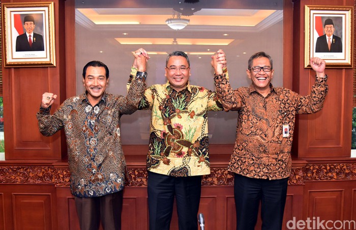 Jakarta - Menteri Desa PDTT Eko Putro Sandjojo menerima Dirut Bulog dan Wakil Dirut BNI. Mereka membahas peningkatan ekonomi perdesaan melalui Badan Usaha Milik Desa.