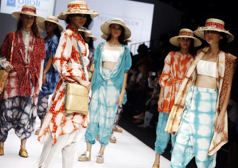 Lenggak-lenggok Model Jakarta Fashion Show Sejumlah model memamerkan busana di hadapan pengunjung Jakarta Fashion Show. Sejumlah model berlenggak-lenggok di atas catwalk. Para model kompak mengenakan topi jerami yang unik. Aksi seorang model memamerkan busana di atas catwalk. Busana muslim juga dipamerkan di Jakarta Fashion Show. Beragam konsep busana yang menarik dan bervariasi dipamerkan di Jakarta Fashion Show.