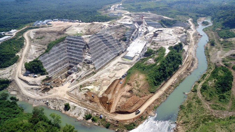 Dengan luas area genangan mencapai 1,74 ha, Bendungan yang memiliki nilai kontrak konstruksi mencapai Rp 1,14 triliun itu direncanakan memiliki daya tampung air mencapai 314,7 juta meter kubik dan kapasitas efektif sebesar Rp 207,5 juta meter kubik. Pool/dok. Kementerian PUPR.
