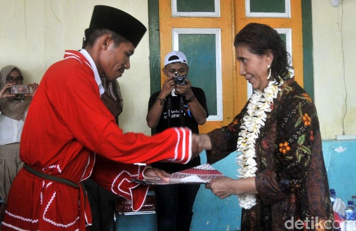 Jakarta - Menteri Kelautan dan Perikanan Susi Pudjiastuti menerima gelar adat 'Orlima Luar' dari masyarakat desa petuanan adat Lonthoir, Kecamatan Banda, Maluku Tengah.