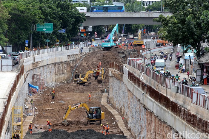Jakarta - Proyek pembangunan underpass Mampang-Kuningan terus dikerjakan. Wagub DKI Jakarta Sandiaga Uno berharap proyek tersebut selesai awal Maret 2018 nanti.