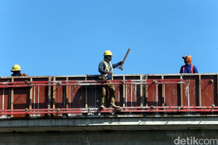 Jakarta - Meski hari libur Natal, pembangunan Tol Becakayu, Jakarta, terus dikebut. Pekerja masih sibuk menyelesaikan proyek.