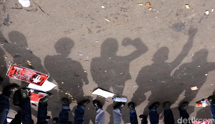Jakarta - Sejumlah buruh yang tergabung dalam Gerakan Buruh/Pekerja BUMN (Geber BUMN) berunjuk rasa meminta penghapusan sistem tenaga kerja outsourcing di BUMN.