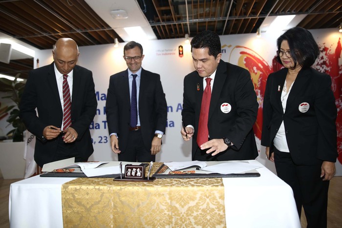 Jakarta - AXA Mandiri resmi menjadi official partner Tim Indonesia di Pesta Olahraga Terbesar Asia 2018, di AXA Tower, Jakarta, Senin (23/4/2018).