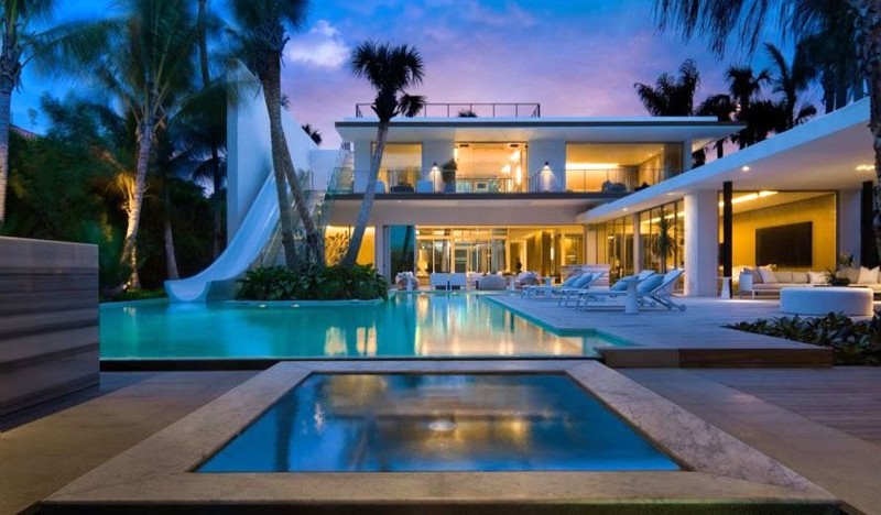 Halaman kolam renang yang besar menawarkan berbagai fasilitas termasuk hot tub, area berbeque, bar, dan bahkan seluncuran air dua tingkat. Istimewa/Inhabitat.