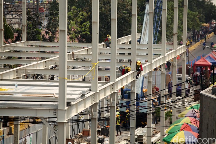 Jakarta - Pembanguan jembatan multiguna atau Skybridge antara Stasiun Tanah Abang menuju Pasar Blok G, sudah dimulai. Jembatan ini ditargetkan selesai Oktober 2018.