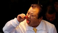 Kiyoshi Kimura pun tak melewatkan untuk merasakan langsung ikan tuna sirip biru yang dihargai fantastis tersebut.