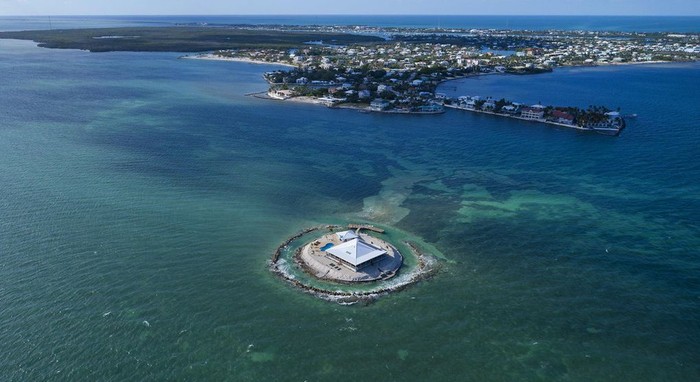 East Sister Rock, sebuah pulau pribadi yang terletak tak jauh dari Florida Keys, merupakan pulau surga. Terdapat satu rumah di pulau kecil itu yang luasnya hampir memakan seluruh pulau. Istimewa/realtor.com.